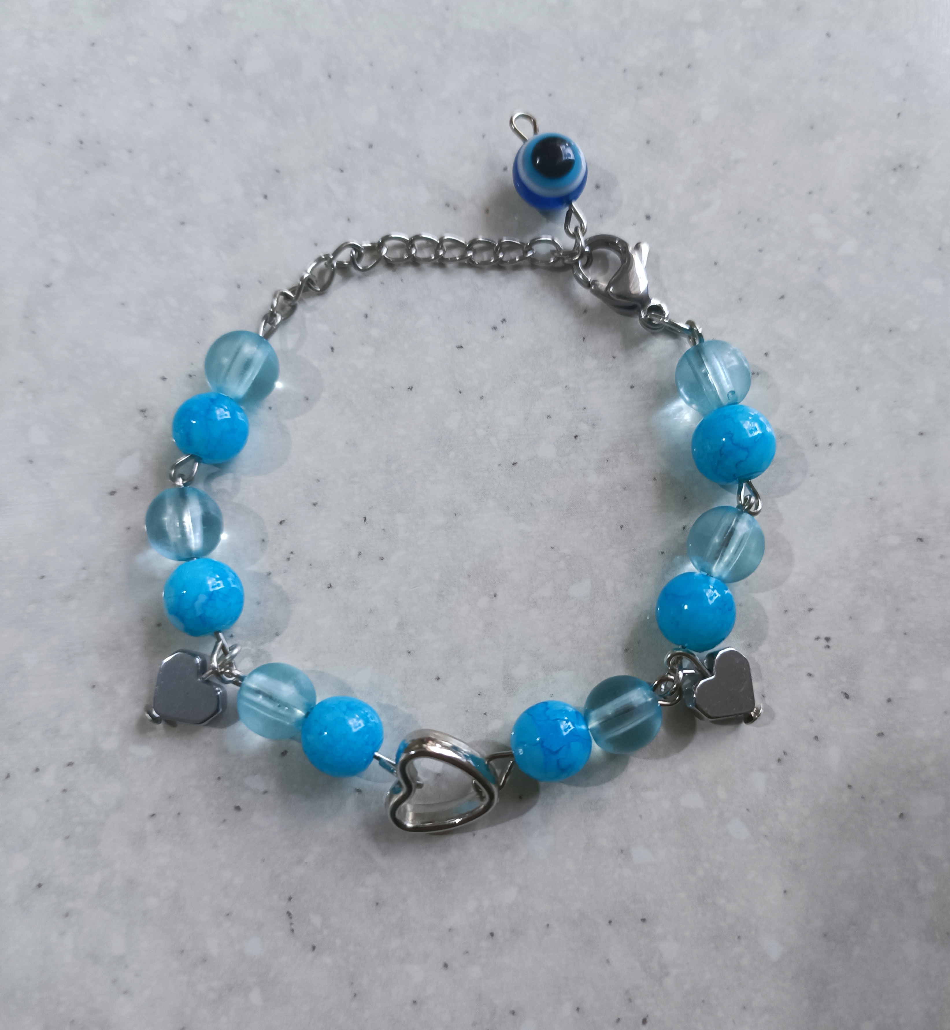 مروارید آبی با خرجکار قلب💙 بسیار زیبا و جذاب 🔥 کاملا دست ساز و محکم 🤩 مناسب برای هدیه دادن و مهمانی 🌸 در آب شستشو ندهید 🙏🏻