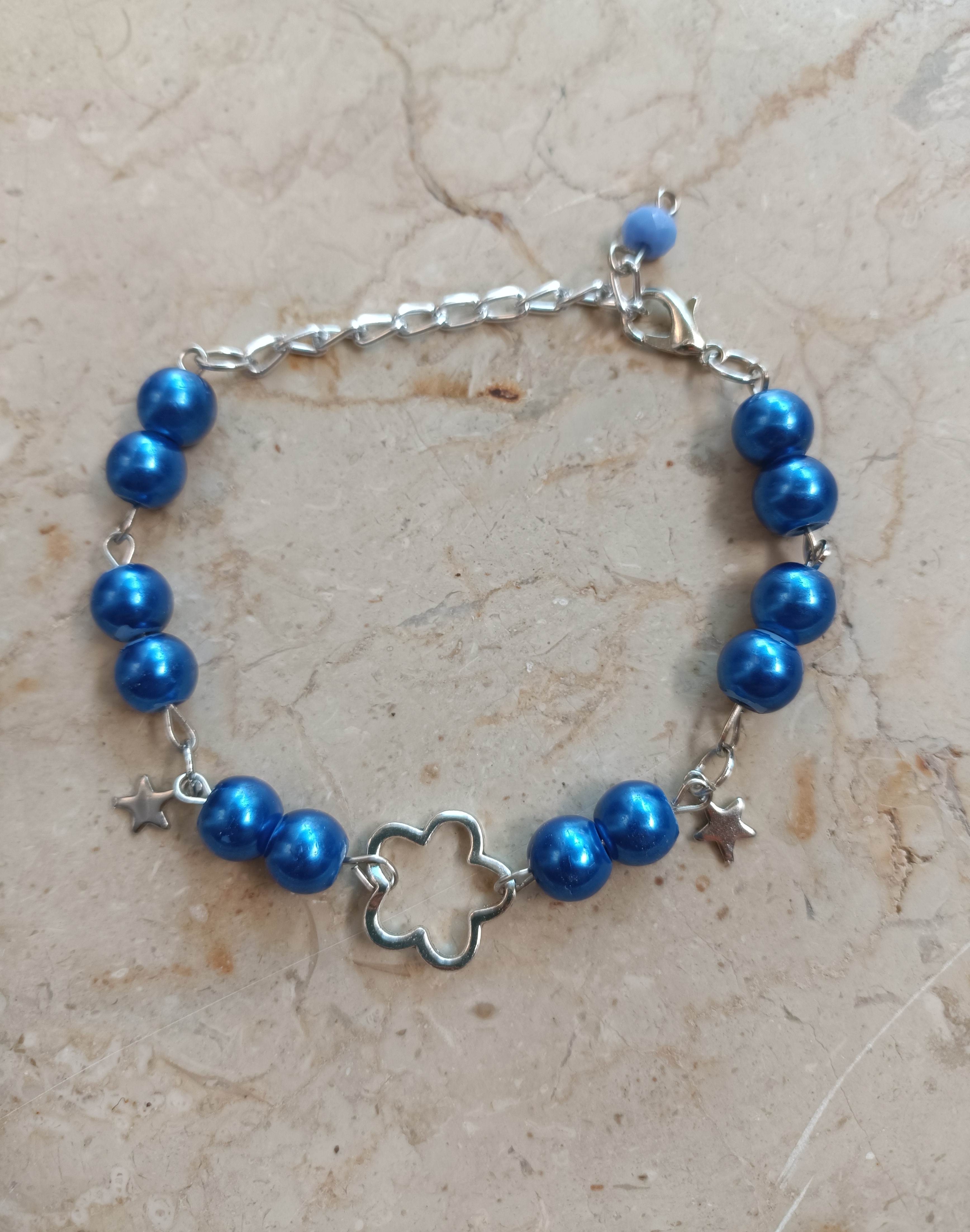 مروارید آبی تیره با خرجکار گل و ستاره 🤩 بسیار زیبا و جذاب 🥹 کاملا دست ساز و محکم ♥️ مناسب برای هدیه دادن و مهمانی 🔥در آب شستشو ندهید 🙏🏻