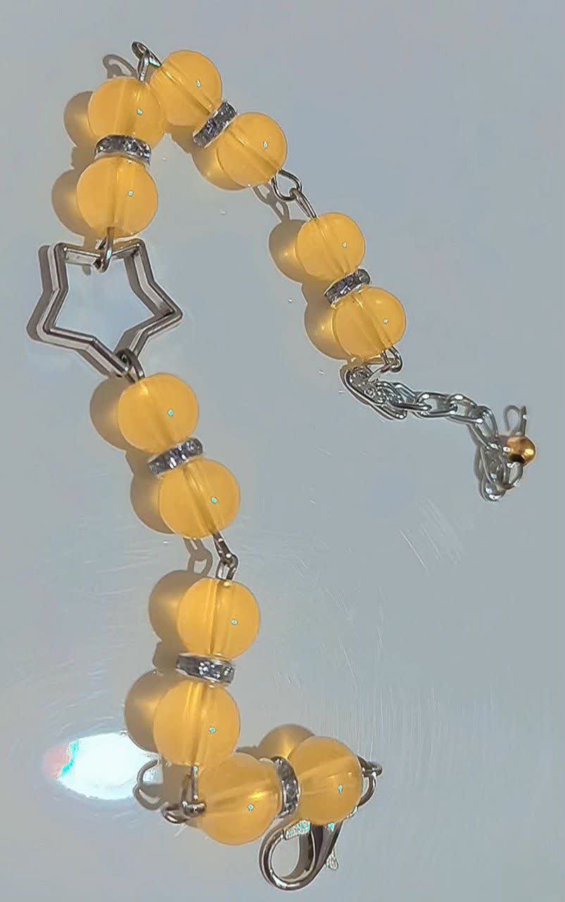 مروارید زرد رنگ با خرجکار ستاره ای 🌠 شیک و زیبا 🔥 کاملا دست ساز و محکم 🤩 با آب شستشو ندهید 🙏🏻