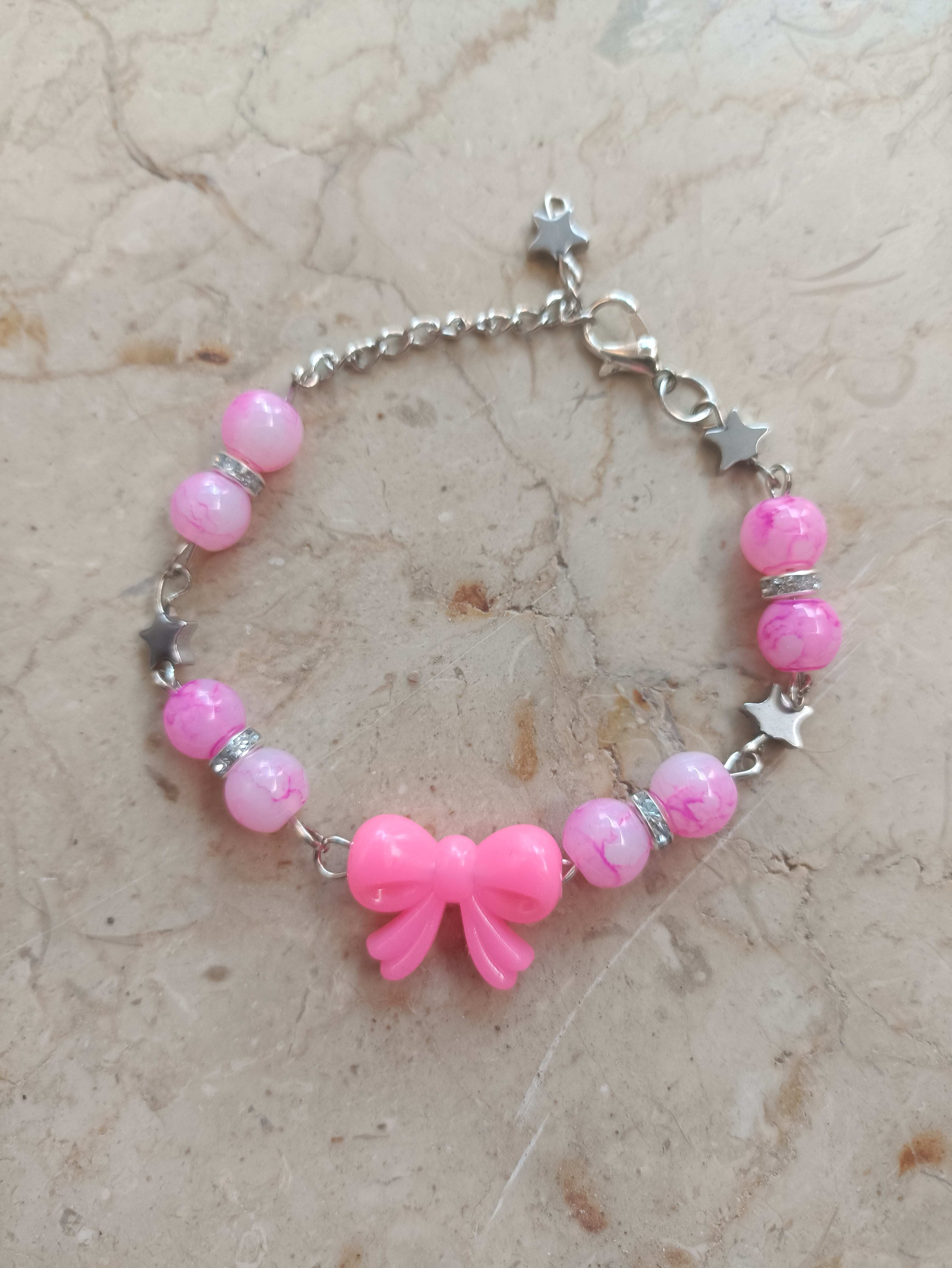 مروارید صورتی با خرجکار پاپیون و ستاره 🤩 بسیار زیبا و جذاب 🔥 کاملا دست ساز و محکم ♥️ مناسب برای هدیه دادن و مهمانی 🌸 در آب شستشو ندهید 🙏🏻