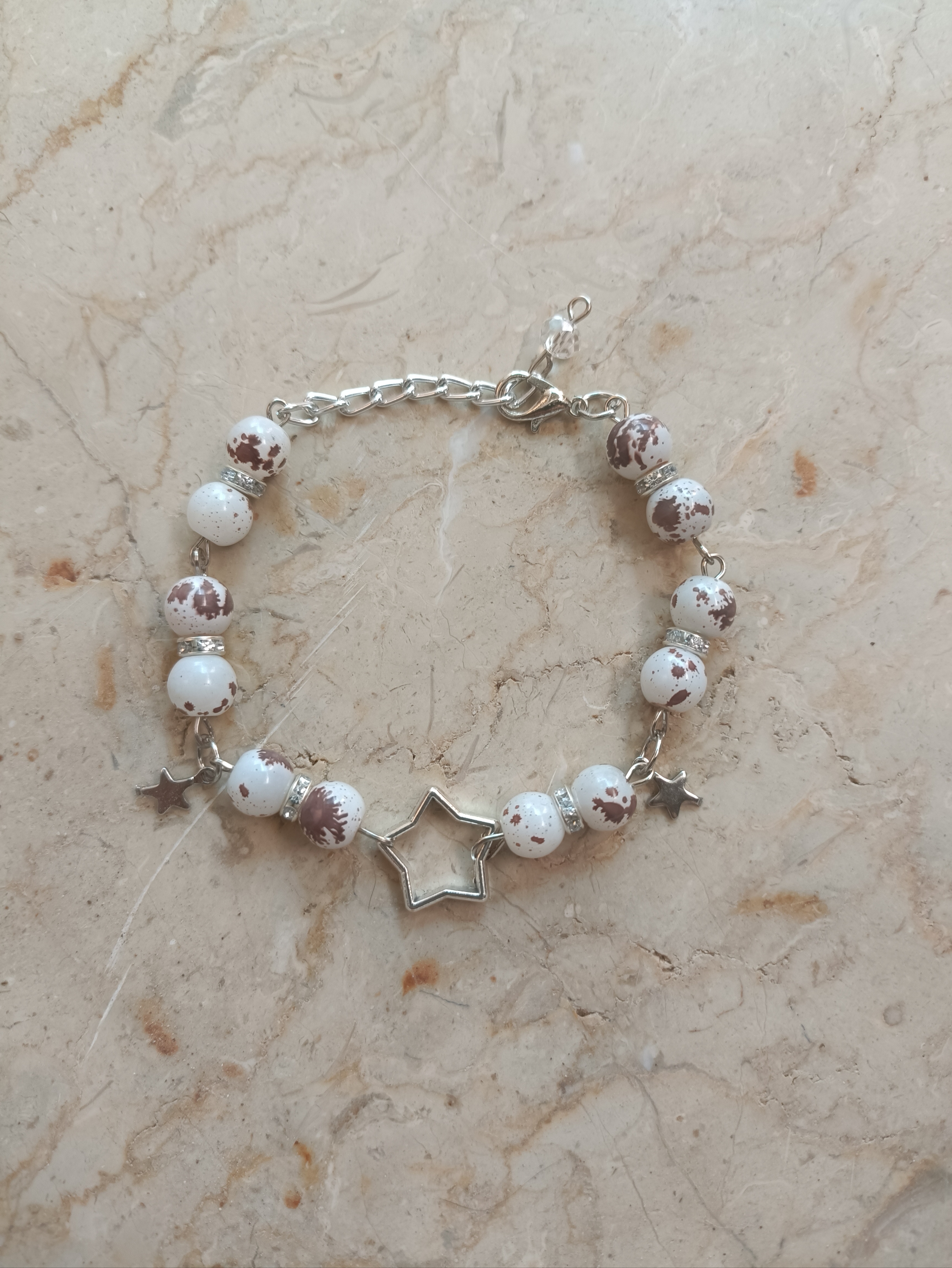 مروارید شیری رنگ با خرجکار ستاره ای 🌠 شیک و زیبا 🤩 کاملا دست ساز و محکم ♥️ مناسب برای هدیه دادن و مهمانی 🌸 در آب شستشو ندهید 🙏🏻