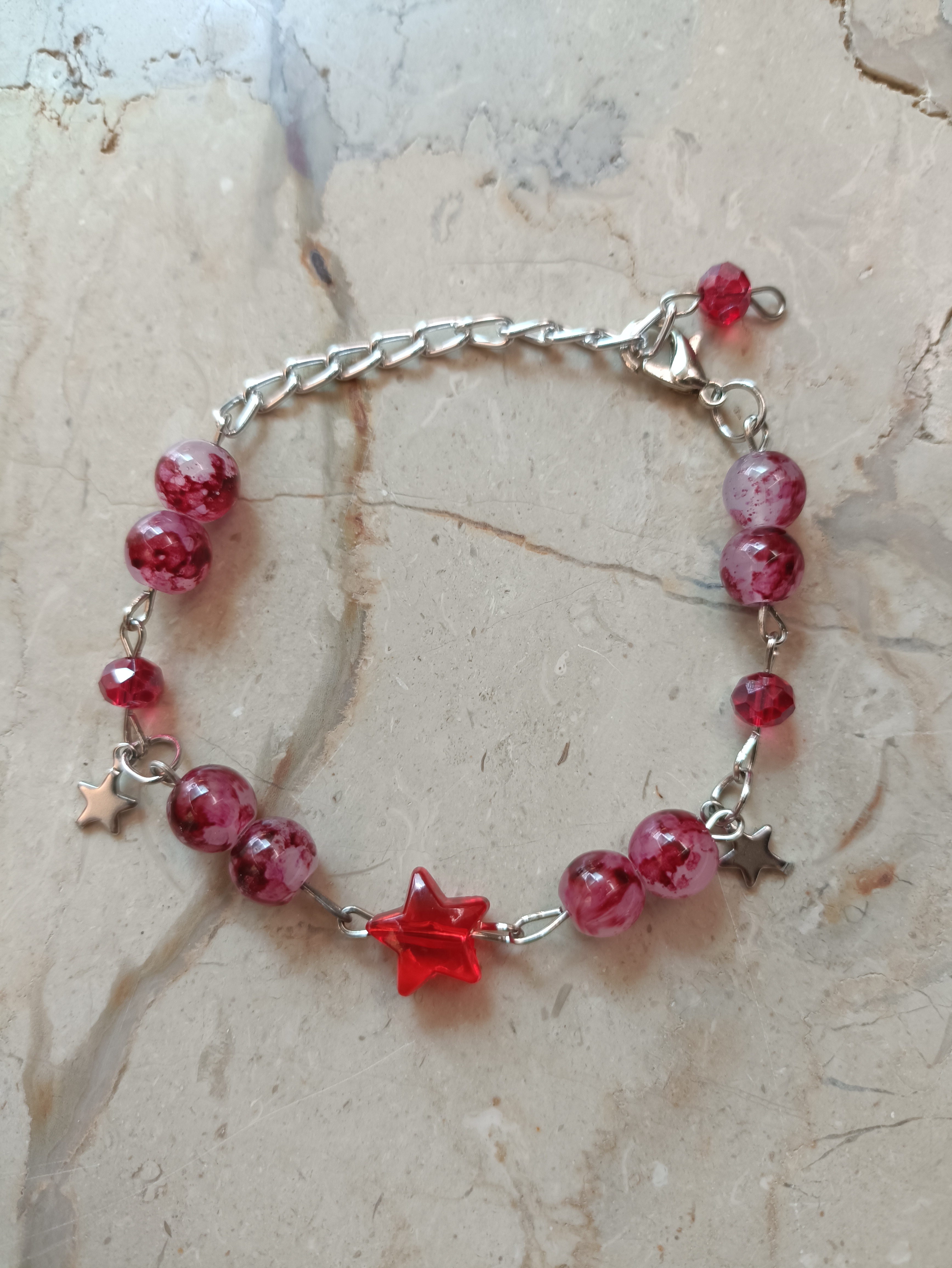مروارید زرشکی با کریستال و خرجکار ستاره ای 🌠 شیک و زیبا 🤩 کاملا دست ساز و محکم ♥️ مناسب برای هدیه دادن و مهمانی 🌸 در آب شستشو ندهید 🙏🏻
