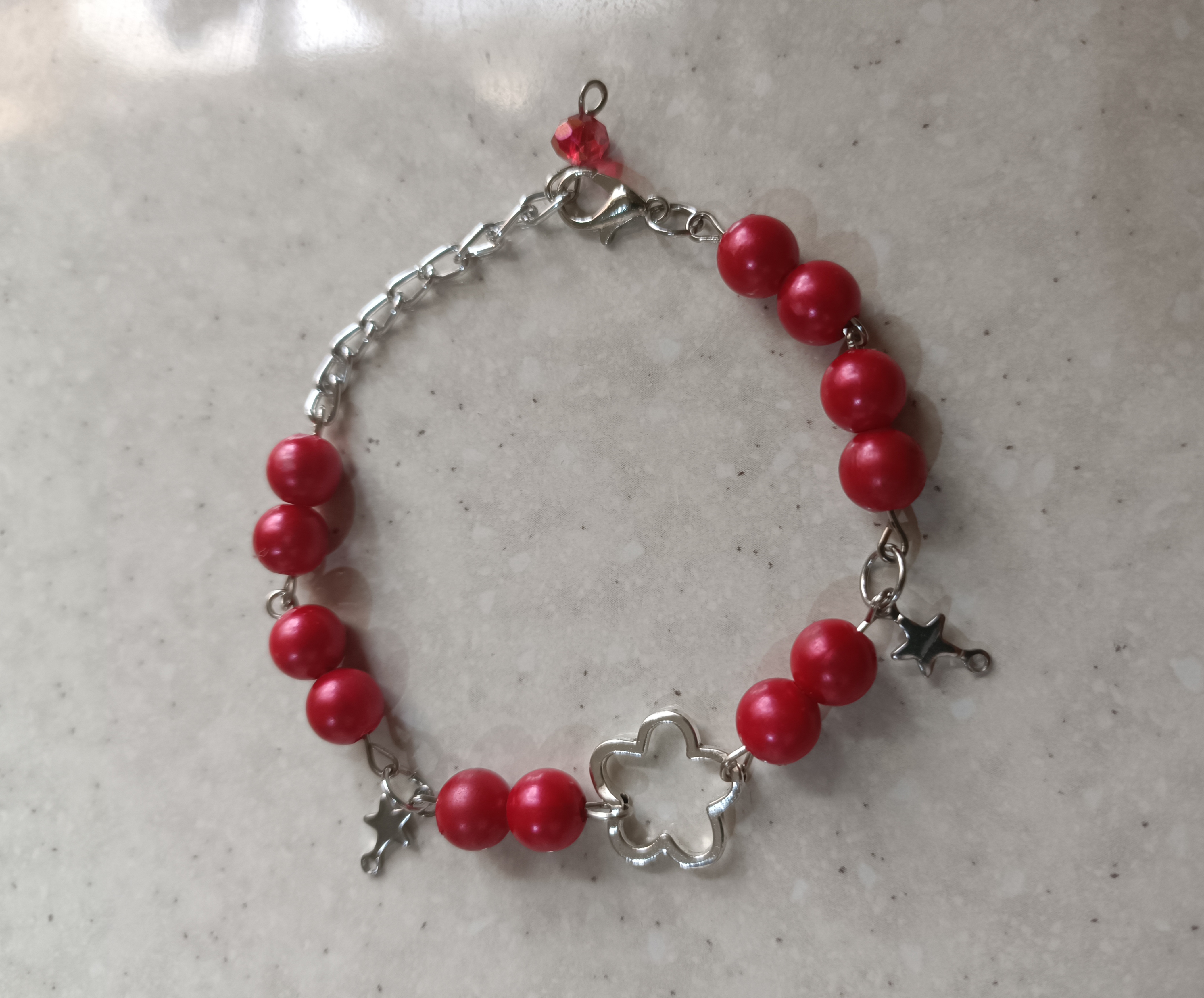 مرواریدی پینترستی قرمز با خرجکار گل و ستاره 🤩 بسیار زیبا و جذاب 🔥 کاملا دست ساز و محکم ♥️ مناسب برای هدیه دادن و مهمانی 🌸