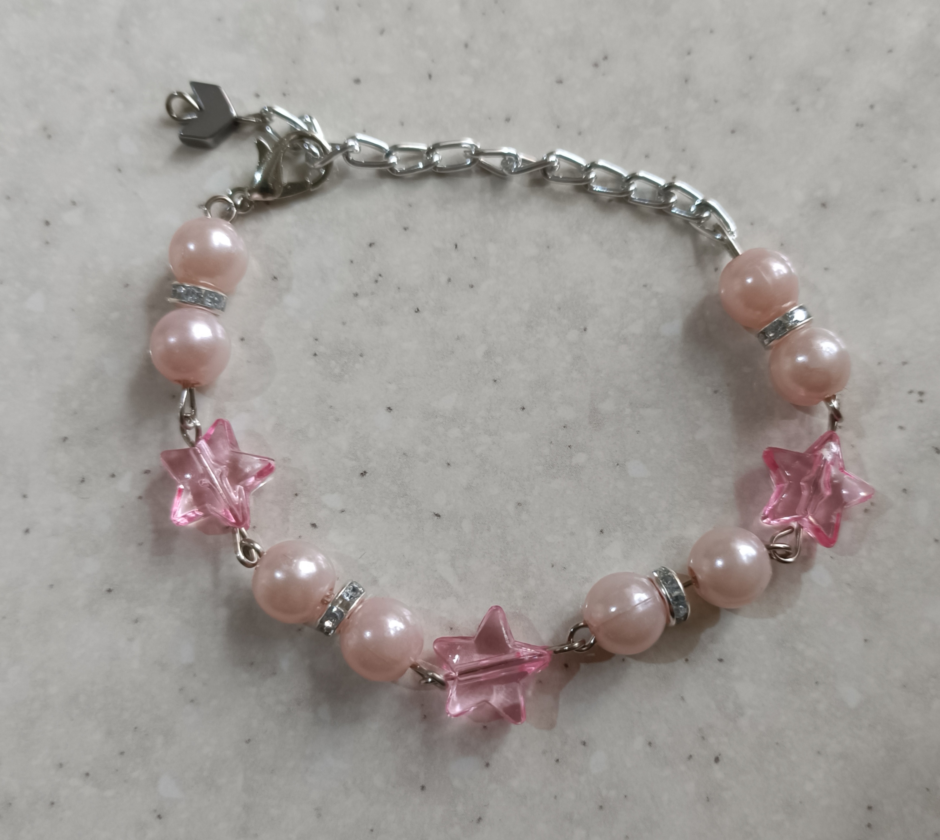 مروارید صورتی با خرجکار ستاره ای 🌠 و حلقه بین مهرهای 🤩 کاملا دست ساز و محکم ♥️ مناسب برای هدیه دادن و مهمانی 🌸 در آب شستشو ندهید 🙏🏻