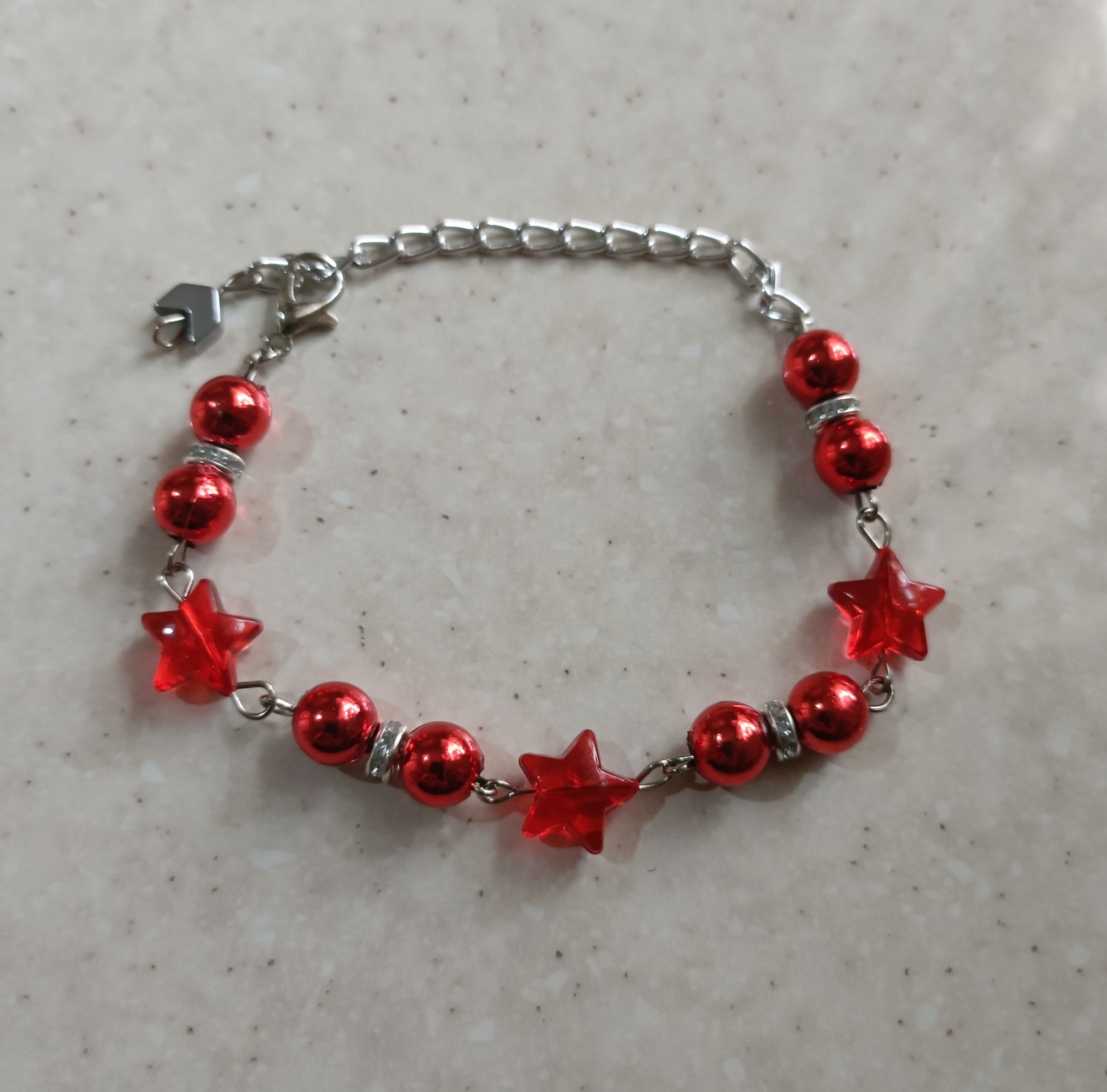 مروارید قرمز با خرجکار ستاره ای قرمز ♥️ و حلقه بین مهرهای 🤩 کاملا دست ساز و محکم و شیک 🔥 مناسب برای هدیه دادن و مهمانی 🌸 در آب شستشو ندهید 🙏🏻